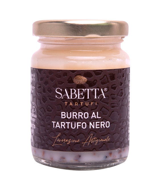 Ingredienti: Burro94%, Tartufo nero estivo 5% (Tuber aestivum vitt.), aroma, sale.