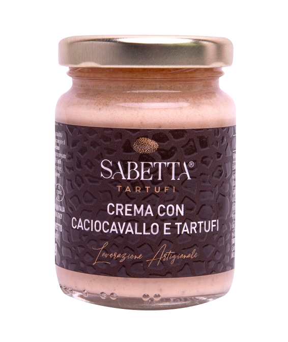 Ingredients: Cream 69%, cheese Caciocavallo12%, extra virgin olive oil, vegetable broth, tender flour of grain”O”, Bianchetto Truffle 3% (Tuber borchii vitt.), fine WhiteTruffle1% (Tuber magnatum pico), flavour, salt.