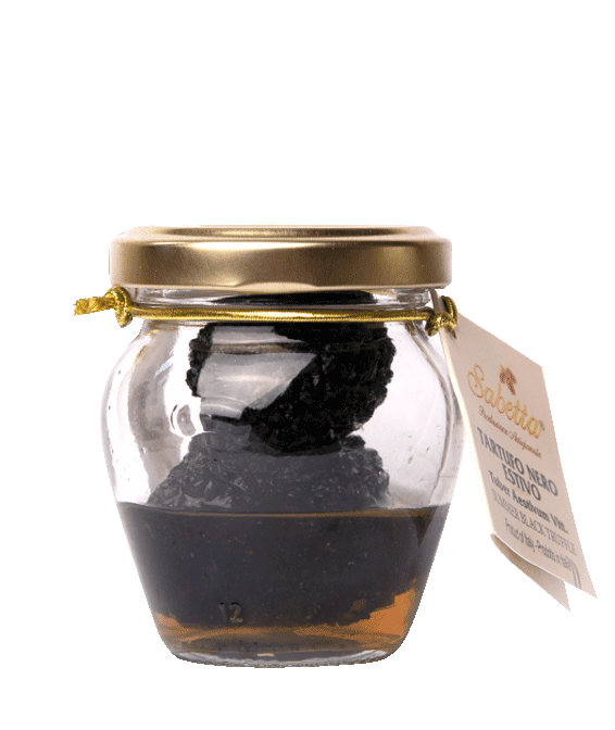 Ingredienti: Tartufo nero estivo (Tuber aestivum vitt.), acqua, sale. Ingredients: Black summer truffle (Tuber aestivum vitt.), water, salt.